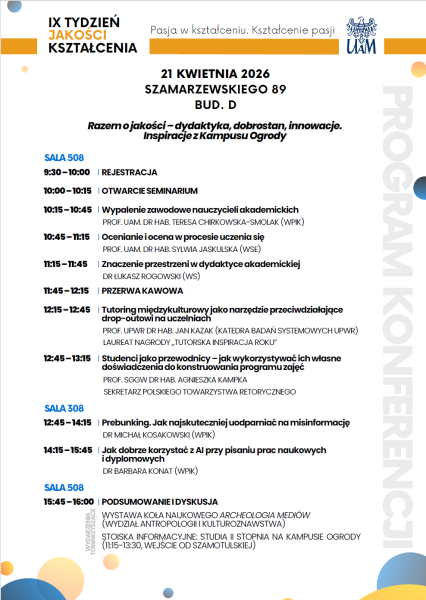 Udział w wydarzeniu stanowi okazję do wymiany doświadczeń, zdobycia nowych inspiracji dydaktycznych oraz refleksji nad współczesnymi wyzwaniami edukacji akademickiej.