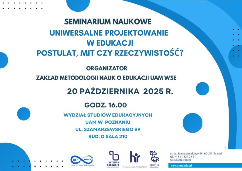 Zakład Metodologii Nauk o Edukacji UAM WSE serdecznie zaprasza na: