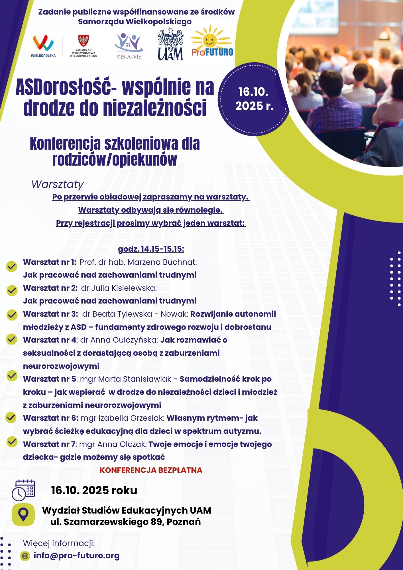 ASDorosłość - wspólnie na drodze do niezależności. Konferencja szkoleniowa dla rodziców/opiekunów