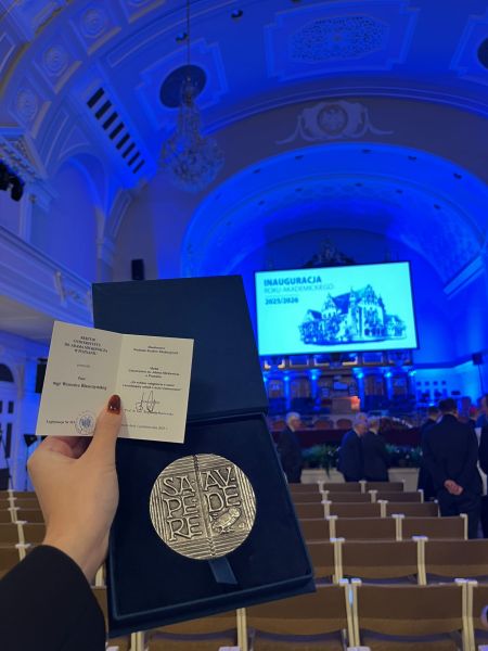 Pierwszym z nich było przyznanie Medalu Uniwersytetu im. Adama Mickiewicza w Poznaniu dla absolwentów naszej absolwentce Weronice Błaszczyńskiej. Medal ten stanowi wyraz uznania dla wybitnych osiągnięć naukowych i jest przyznawany osobom, które spełniają jednocześnie szereg rygorystycznych kryteriów: