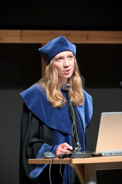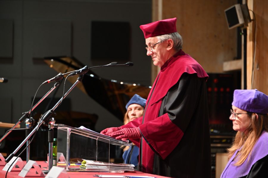 Podczas uroczystości szczególnym punktem programu był wykład inauguracyjny prof. Natalii Walter z Wydziału Studiów Edukacyjnych UAM pt. „Czy mądrość da się wygenerować? O studiowaniu w czasach sztucznej inteligencji”.